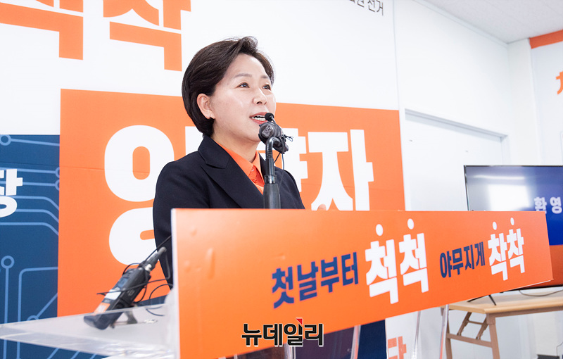 양향자 용인갑 예비후보가 13일 오전 경기 용인시 선거사무소에서 열린 개소식에서 환영사를 하고 있다. (경기 용인=서성진 기자)
