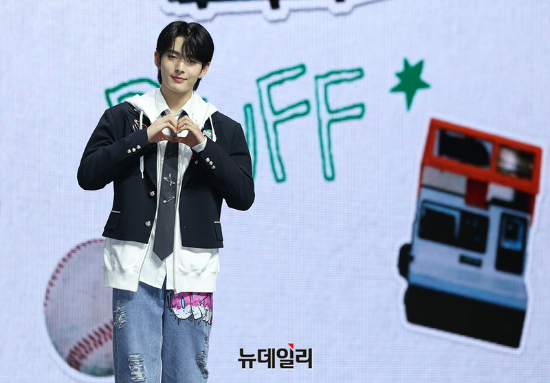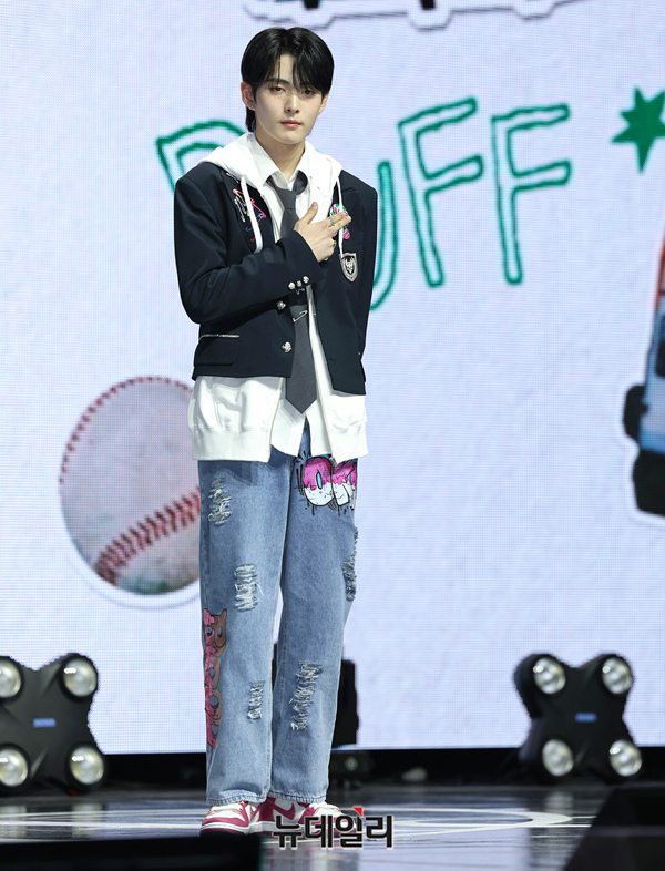 아이돌그룹 LUN8(루네이트) 유일한 외국인 멤버 타쿠마가 13일 오후 서울 광진구 예스24 라이브홀에서 열린 2번째 미니앨범 'BUFF(버프)' 쇼케이스에서 포즈를 취하고 있다.7개월 만에 새 앨범 '버프'로 컴백한 루네이트는 '우리가 모여 함께 미래를 그리면 무엇이든 이룰 수 있는 힘을 얻을 수 있다'는 메시지를 전한다.타이틀곡 'SUPER POWER(수퍼 파워)'는 강렬하고 중독적인 훅으로 힘찬 바이브를 느낄 수 있는 곡이다. 총 6곡이 수록됐다. 음원은 이날 오후 6시에 공개된다.