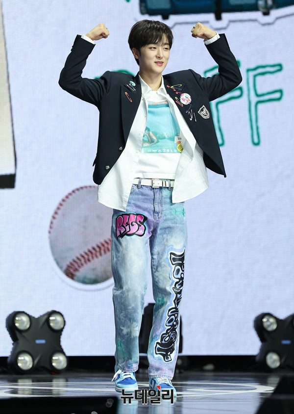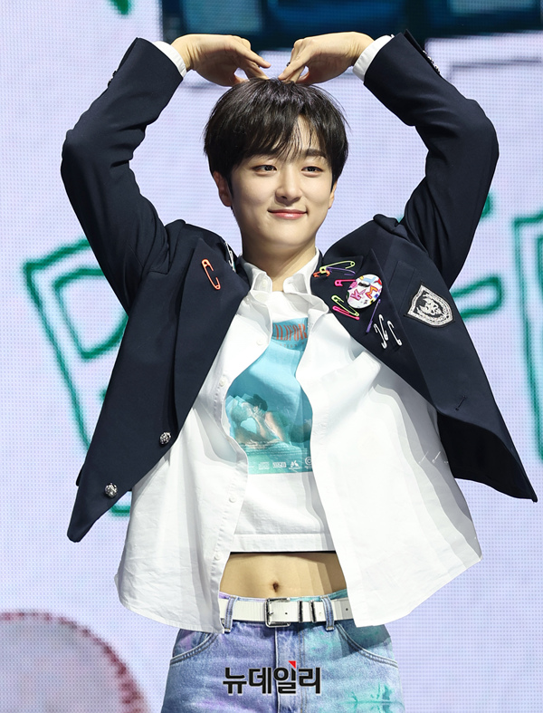 아이돌그룹 LUN8(루네이트) 진수가 13일 오후 서울 광진구 예스24 라이브홀에서 열린 2번째 미니앨범 'BUFF(버프)' 쇼케이스에서 포즈를 취하고 있다.7개월 만에 새 앨범 '버프'로 컴백한 루네이트는 '우리가 모여 함께 미래를 그리면 무엇이든 이룰 수 있는 힘을 얻을 수 있다'는 메시지를 전한다.타이틀곡 'SUPER POWER(수퍼 파워)'는 강렬하고 중독적인 훅으로 힘찬 바이브를 느낄 수 있는 곡이다. 총 6곡이 수록됐다. 음원은 이날 오후 6시에 공개.