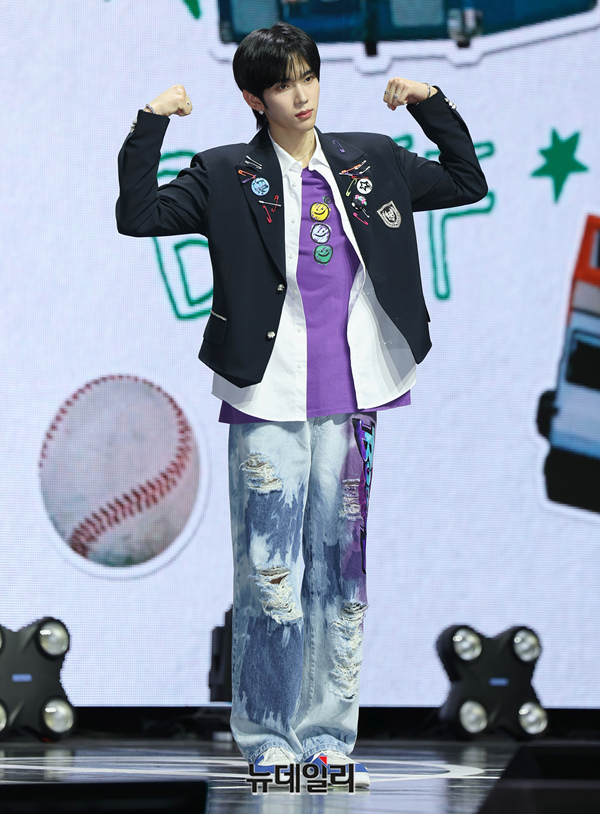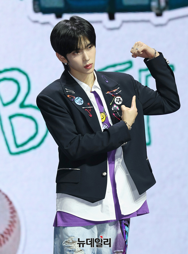 아이돌그룹 LUN8(루네이트) 카엘이 13일 오후 서울 광진구 예스24 라이브홀에서 열린 2번째 미니앨범 'BUFF(버프)' 쇼케이스에서 포즈를 취하고 있다.7개월 만에 새 앨범 '버프'로 컴백한 루네이트는 '우리가 모여 함께 미래를 그리면 무엇이든 이룰 수 있는 힘을 얻을 수 있다'는 메시지를 전한다.타이틀곡 'SUPER POWER(수퍼 파워)'는 강렬하고 중독적인 훅으로 힘찬 바이브를 느낄 수 있는 곡이다. 총 6곡이 수록됐다. 음원은 이날 오후 6시에 공개.