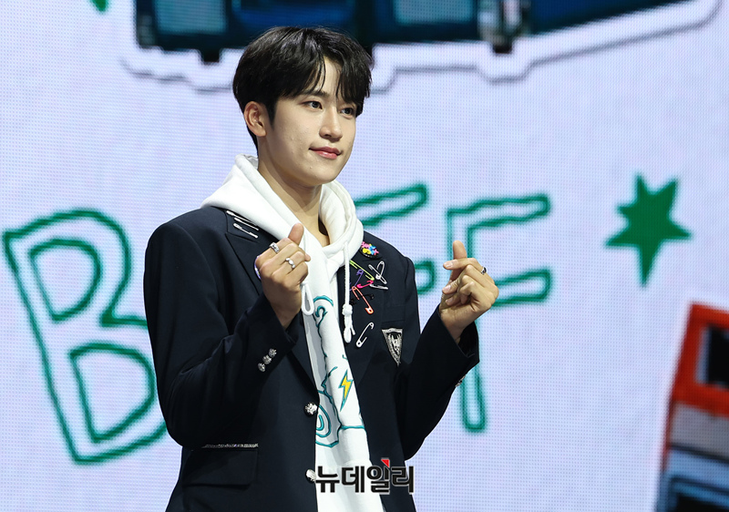 아이돌그룹 LUN8(루네이트) 준우가 13일 오후 서울 광진구 예스24 라이브홀에서 열린 2번째 미니앨범 'BUFF(버프)' 쇼케이스에서 포즈를 취하고 있다.7개월 만에 새 앨범 '버프'로 컴백한 루네이트는 '우리가 모여 함께 미래를 그리면 무엇이든 이룰 수 있는 힘을 얻을 수 있다'는 메시지를 전한다.타이틀곡 'SUPER POWER(수퍼 파워)'는 강렬하고 중독적인 훅으로 힘찬 바이브를 느낄 수 있는 곡이다. 총 6곡이 수록됐다. 음원은 이날 오후 6시에 공개.