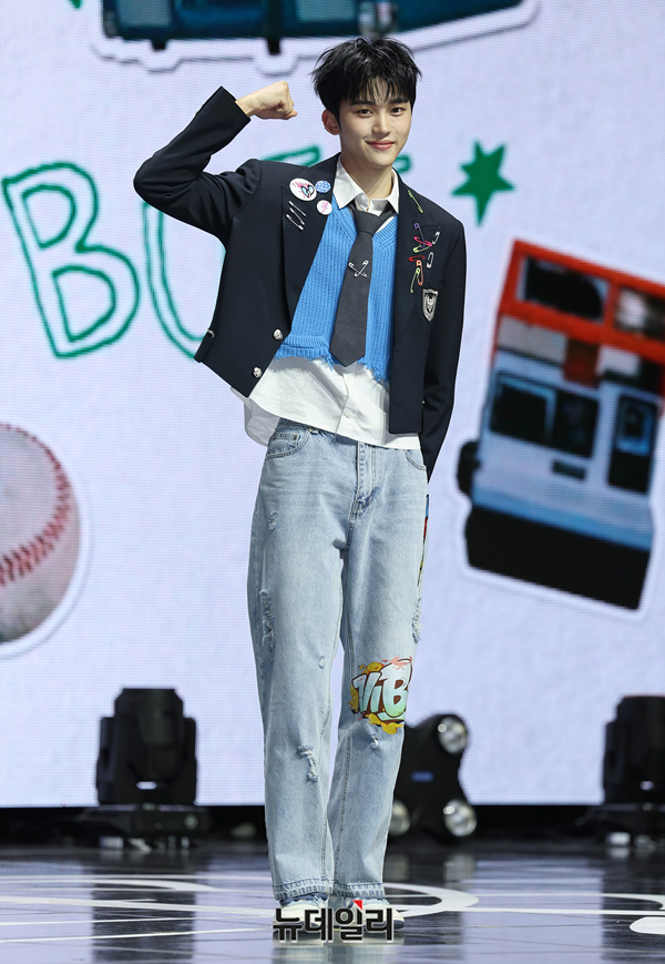 아이돌그룹 LUN8(루네이트) 도현이 13일 오후 서울 광진구 예스24 라이브홀에서 열린 2번째 미니앨범 'BUFF(버프)' 쇼케이스에서 포즈를 취하고 있다.7개월 만에 새 앨범 '버프'로 컴백한 루네이트는 '우리가 모여 함께 미래를 그리면 무엇이든 이룰 수 있는 힘을 얻을 수 있다'는 메시지를 전한다.타이틀곡 'SUPER POWER(수퍼 파워)'는 강렬하고 중독적인 훅으로 힘찬 바이브를 느낄 수 있는 곡이다. 총 6곡이 수록됐다. 음원은 이날 오후 6시에 공개.
