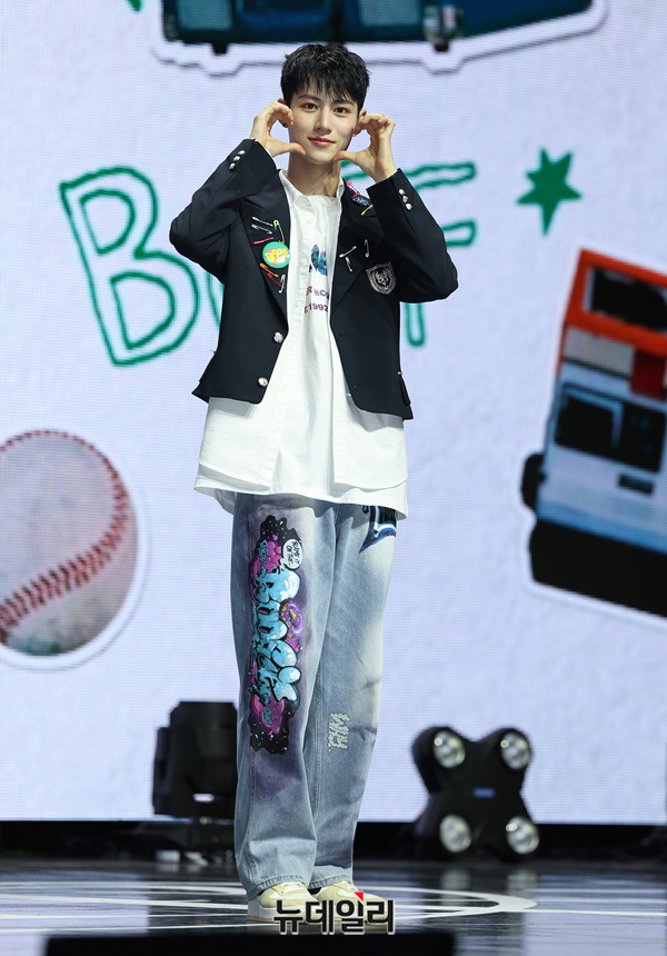 아이돌그룹 LUN8(루네이트) 이안이 13일 오후 서울 광진구 예스24 라이브홀에서 열린 2번째 미니앨범 'BUFF(버프)' 쇼케이스에서 포즈를 취하고 있다.7개월 만에 새 앨범 '버프'로 컴백한 루네이트는 '우리가 모여 함께 미래를 그리면 무엇이든 이룰 수 있는 힘을 얻을 수 있다'는 메시지를 전한다.타이틀곡 'SUPER POWER(수퍼 파워)'는 강렬하고 중독적인 훅으로 힘찬 바이브를 느낄 수 있는 곡이다. 총 6곡이 수록됐다. 음원은 이날 오후 6시에 공개.