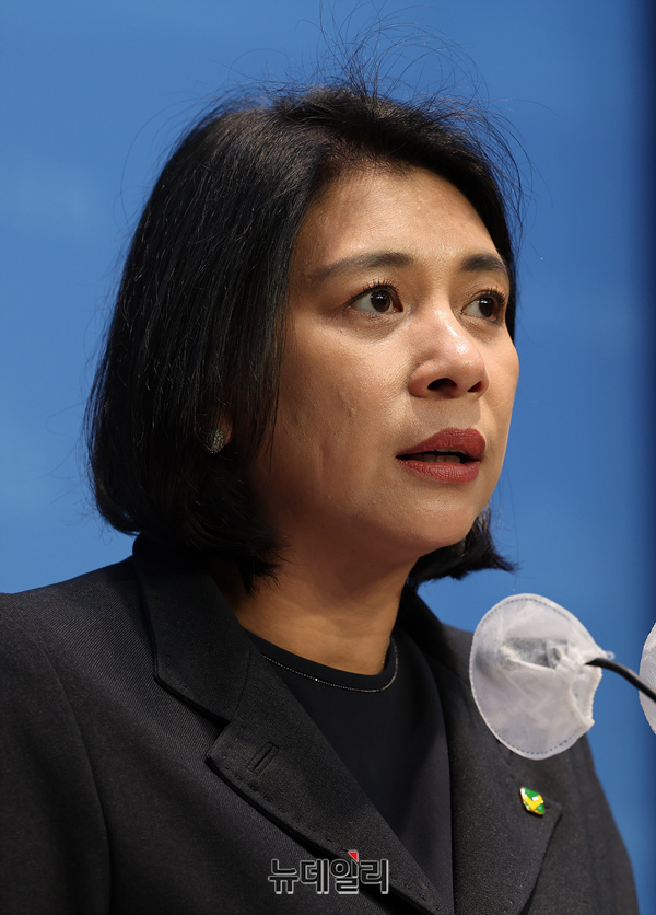 이자스민 녹색정의당 의원이 14일 오후 국회소통관에서 이주노동자 관련 정책을 발표하고 있다.