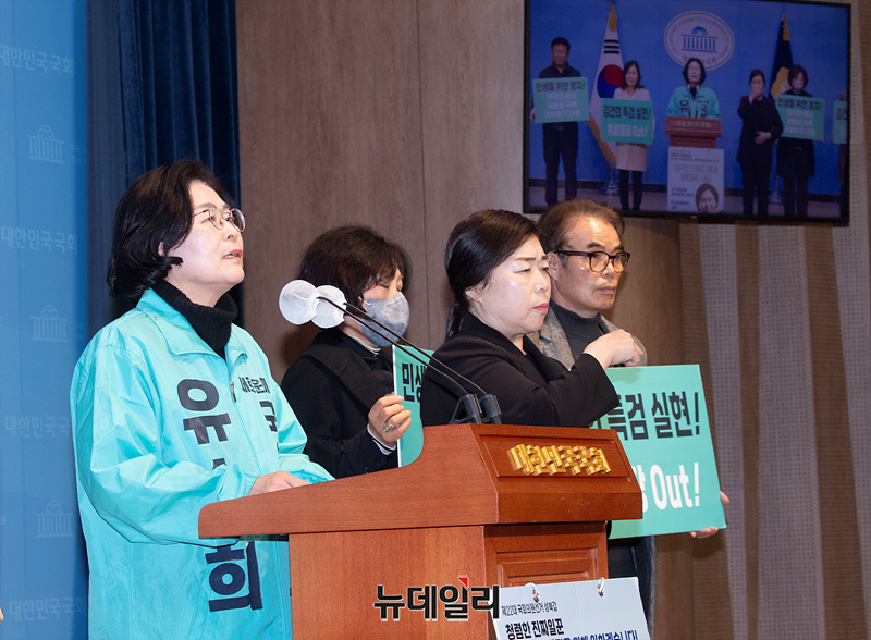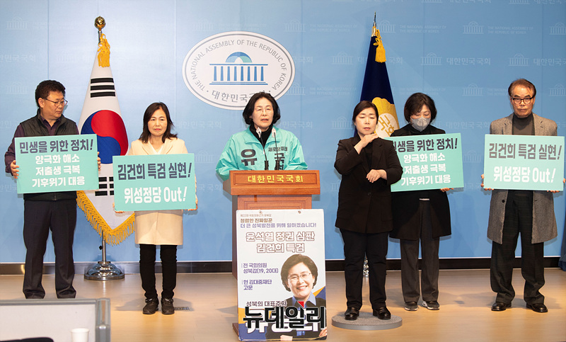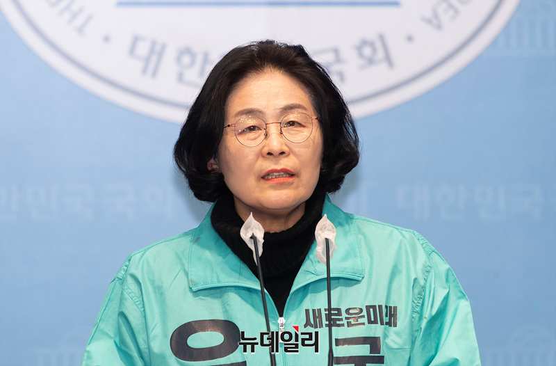 유승희 새로운미래 성북갑 후보가 14일 오후 국회 소통관에서 총선 출마 기자회견을 하고 있다.