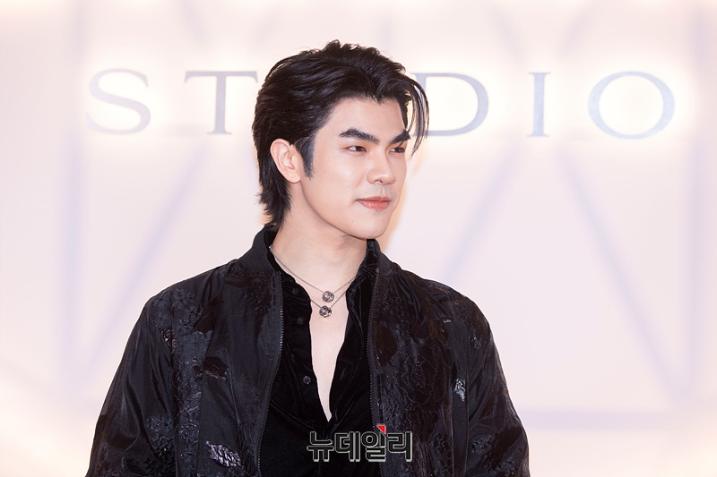 태국 배우 마일 팍품이 14일 오후 서울 광진구 빛의 시어터에서 열린 '불가리 스튜디오(Bulgari Studio)' 포토월에서 포즈를 취하고 있다.