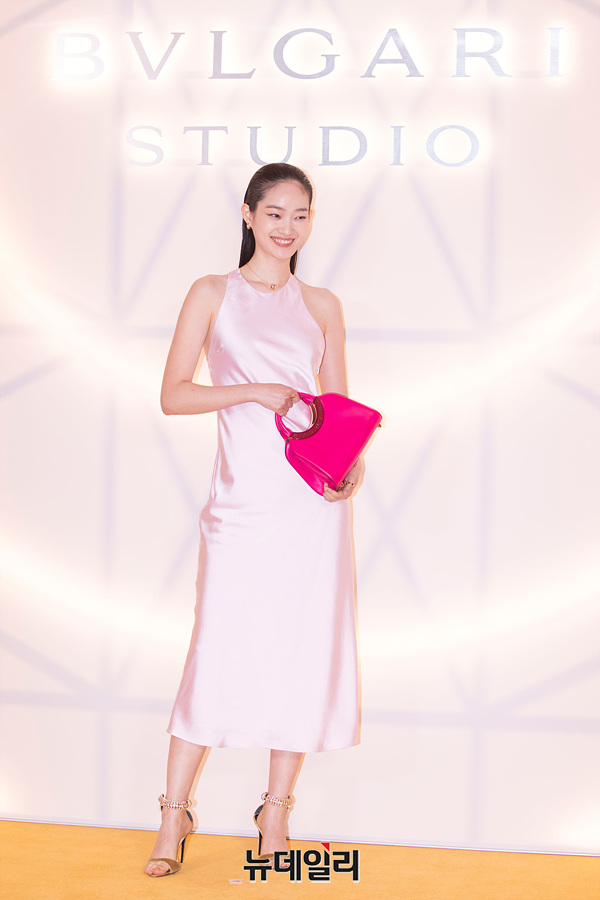 모델 신현지가 14일 오후 서울 광진구 빛의 시어터에서 열린 '불가리 스튜디오(Bulgari Studio)' 포토월에서 포즈를 취하고 있다.