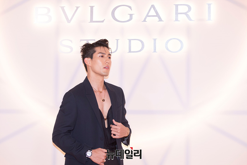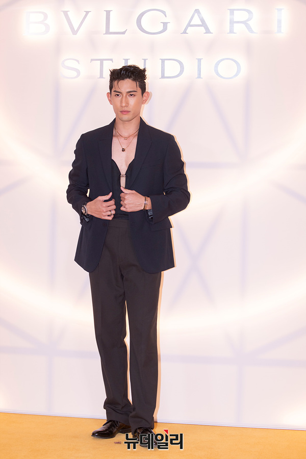 싱가포르 배우 에이든 승이 14일 오후 서울 광진구 빛의 시어터에서 열린 '불가리 스튜디오(Bulgari Studio)' 포토월에서 포즈를 취하고 있다.