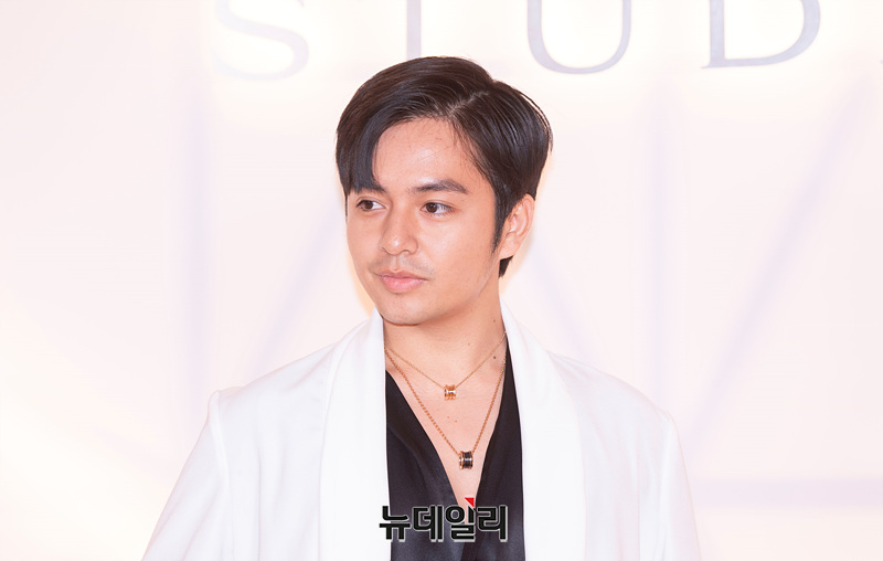 인도네시아 배우 앙가 유난다가 14일 오후 서울 광진구 빛의 시어터에서 열린 '불가리 스튜디오(Bulgari Studio)' 포토월에서 포즈를 취하고 있다.