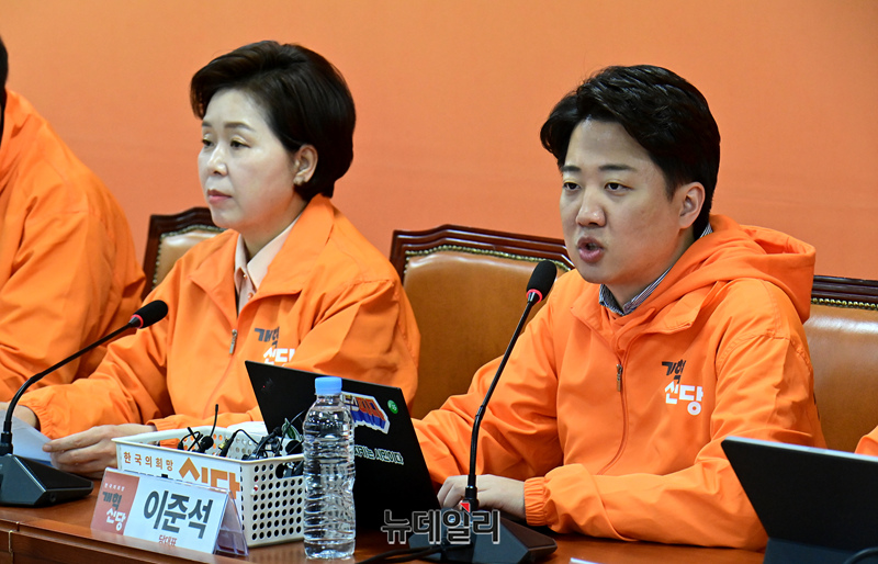 이준석 개혁신당 대표가 15일 국회에서 열린 최고위원회의에서 모두발언을 하고 있다.