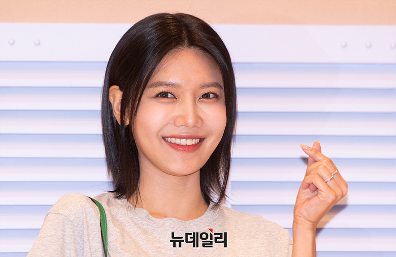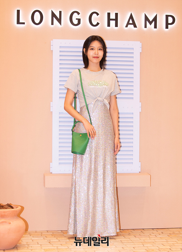 가수 겸 배우 수영이 15일 오후 서울 여의도 더현대 서울에서 열린 '롱샴 SS24 컬렉션 팝업스토어 오픈 기념' 포토월에서 포즈를 취하고 있다.