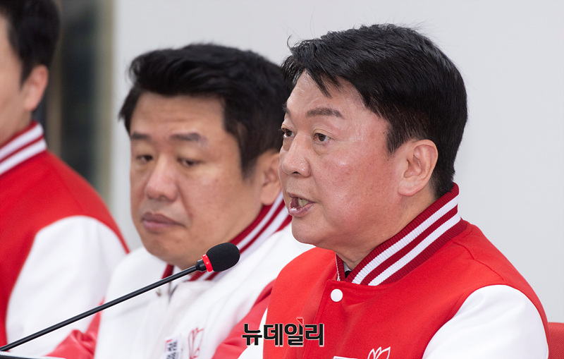 안철수 국민의힘 공동선거대책위원장이 18일 오전 서울 여의도 중앙당사에서 열린 중앙선거대책위원회의에서 모두발언을 하고 있다.