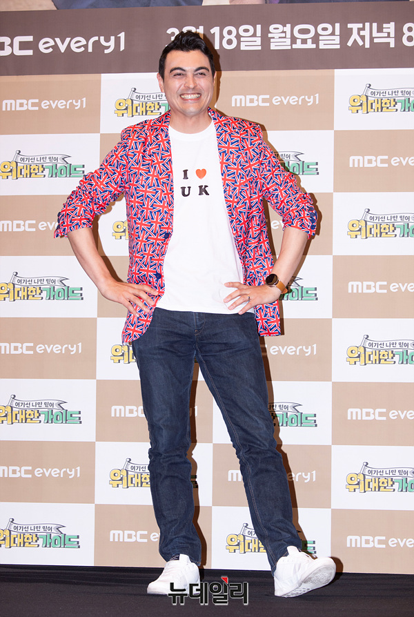 방송인 피터 빈트가 18일 오후 서울 마포구 상암 스탠포드 호텔에서 열린 MBC에브리원 신규 예능 '위대한 가이드(연출 김예린)' 제작발표회에서 포즈를 취하고 있다.