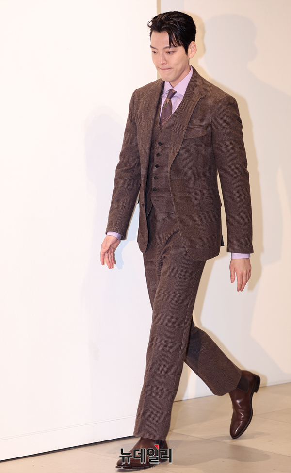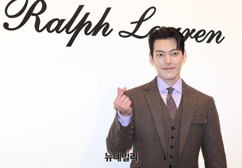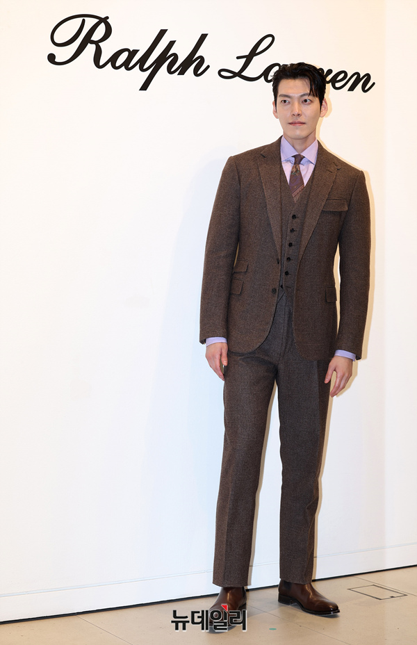 배우 김우빈이 19일 오후 서울 강남구 서울옥션 강남센터에서 열린 '랄프로렌 스프링 2024 프레젠테이션' 행사에서 포즈를 취하고 있다.