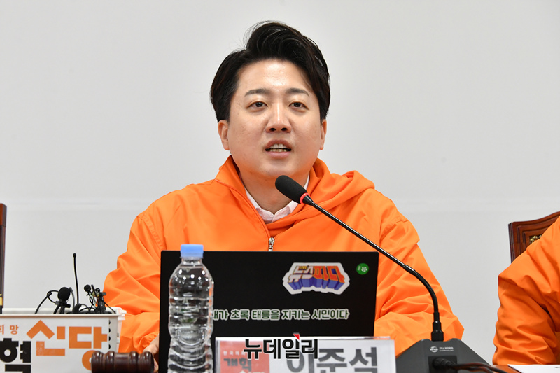 이준석 개혁신당 대표가 20일 국회에서 열린 최고위원회의에서 모두발언을 하고 있다.