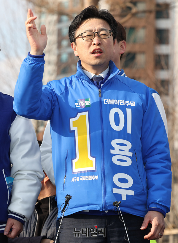 이용우 더불어민주당 인천 서구을 후보가 20일 오후 인천 서구 정서진중앙시장을 찾은 이재명 상임선대위원장과 인천지역 후보들과 함께 지지호소를 하고 있다. (인천=정상윤 기자)