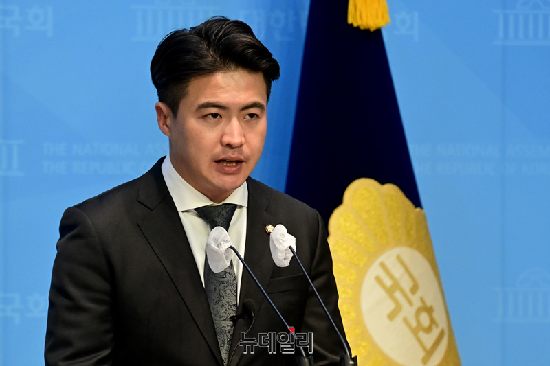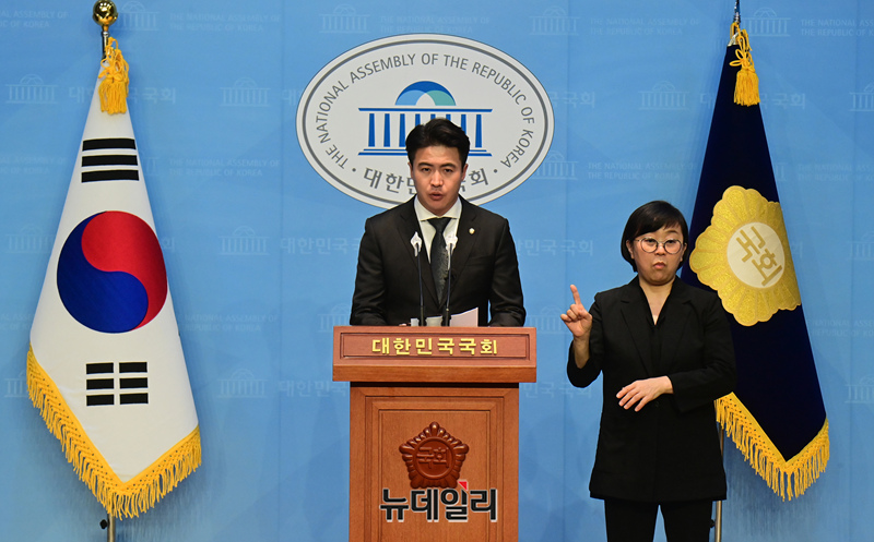 오영환 새로운미래 총괄선대위원장이 21일 오전 국회 소통관에서 22대 총선 새로운 미래 '미래준비' 공약 발표 기자회견에 앞서 이종섭 호주대사 귀국 관련 비판을 하고 있다.