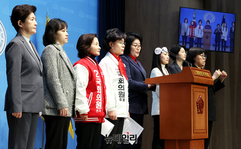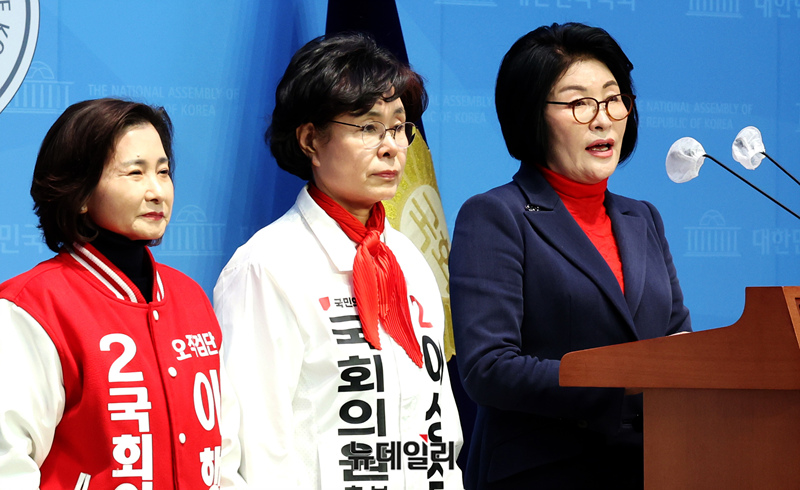[포토] 국민의힘·국민의미래 여성후보들 '성범죄자 변호 조수진 사퇴해야'
