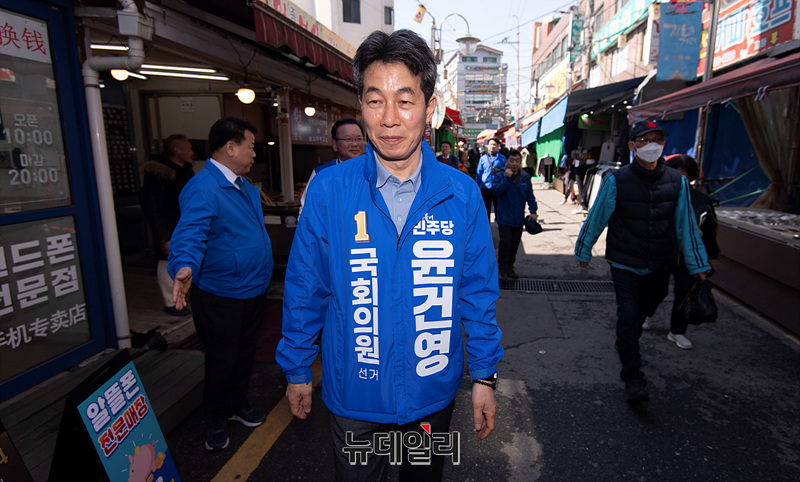 [포토] 거리인사하는 윤건영 더불어민주당 구로을 후보
