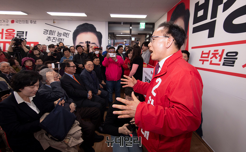 하종대 부천병 후보가 23일 오후 경기 부천에서 열린 박성중 후보 선거사무소 개소식에서 발언하고 있다. (경기 부천=서성진 기자)