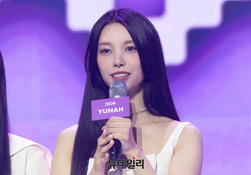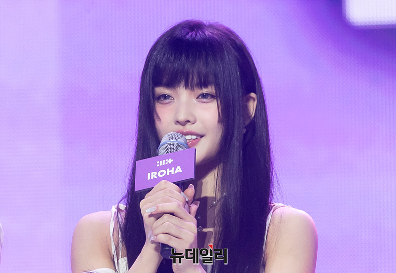 걸그룹 아일릿(Illit)이 25일 오후 서울 용산구 블루스퀘어에서 열린 미니 1집 '슈퍼 리얼 미(Super Real Me)' 쇼케이스에서 소감을 밝히고 있다.