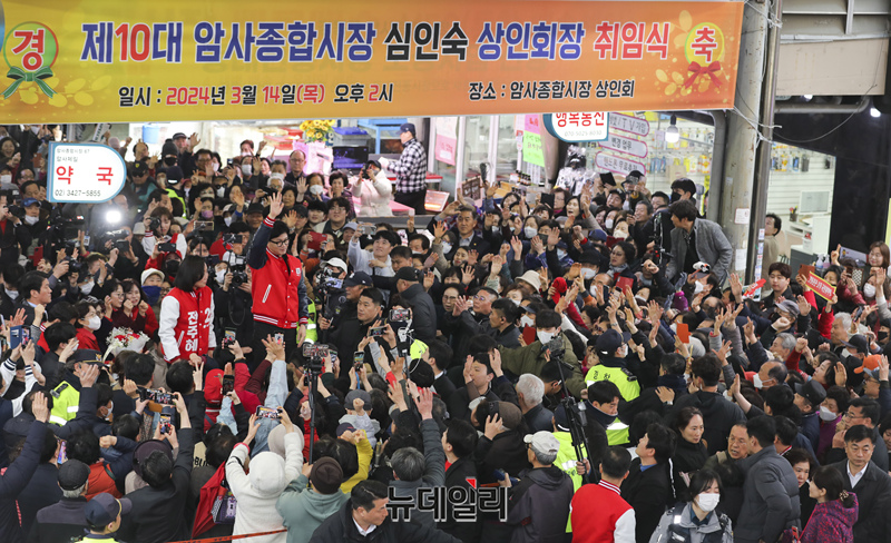 [포토] 강동 암사시장 찾은 한동훈-전주혜-이재영