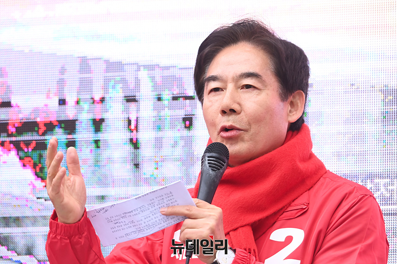 이용호 서대문갑 후보가 28일 오전 서울 서대문구 신촌 유플렉스에서 열린 선거유세 현장에서 시민들에게 인사하고 있다.