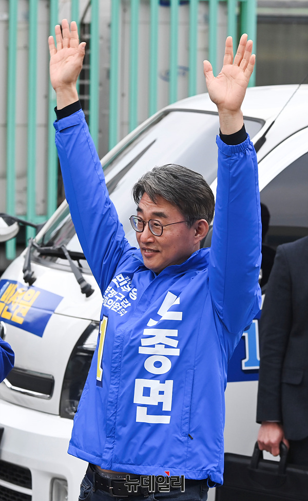 노종면 더불어민주당 인천부평갑 후보가 28일 오후 인천 부평역 북광장에서 열린 인천시당 총선 출정식에서 시민들에게 인사하고 있다. (인천=서성진 기자)