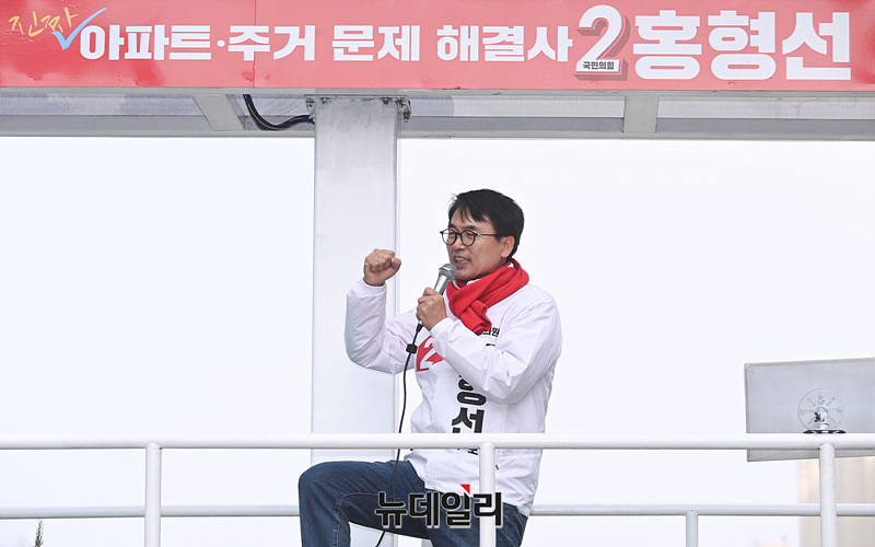 홍형선 국민의힘 화성갑 후보가 29일 오후 경기 화성시 향남 로데오거리 분수대광장에서 열린 선거유세 현장에서 지지를 호소하고 있다. (경기 화성=서성진 기자)