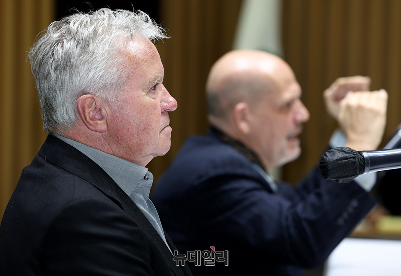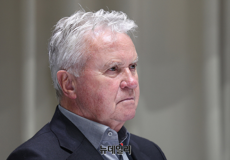 거스 히딩크 전 축구 국가대표팀 감독이 1일 오후 서울시청에서 열린 서울시향 홍보대사 위촉식 기자간담회에서 질의를 듣고 있다.