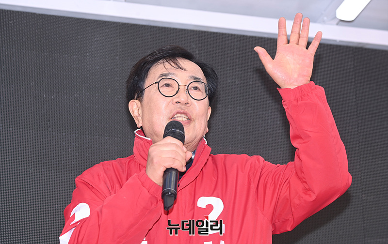 서병수 부산북갑 후보와 박성훈 부산북을 후보가 1일 오후 부산 북구 구포시장 인근에서 열린 선거유세 현장에서 지지를 호소하고 있다. (부산=서성진 기자)