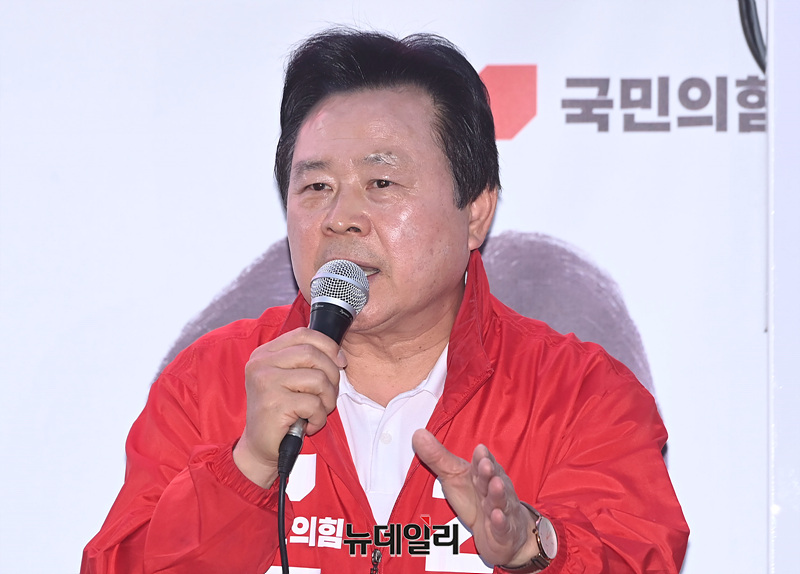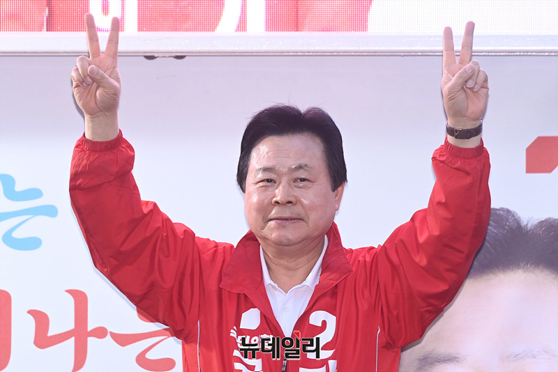 강기윤 국민의힘 창원성산 후보가 1일 오후 경남 창원 성산구 반송시장 앞에서 열린 선거유세 현장에서 지지를 호소하고 있다. (경남 창원=서성진 기자)