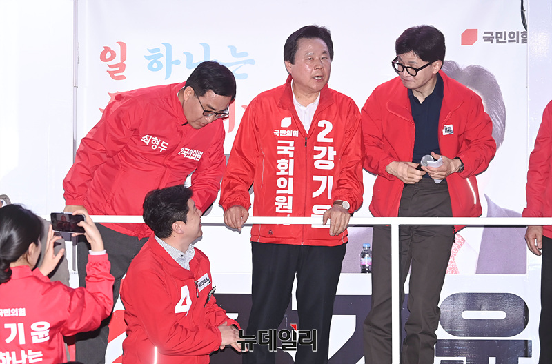 진종오 국민의미래 비례대표 후보가 1일 오후 경남 창원 성산구 반송시장 앞에서 열린 선거유세 현장에 참석해 자리하고 있다. (경남 창원=서성진 기자)