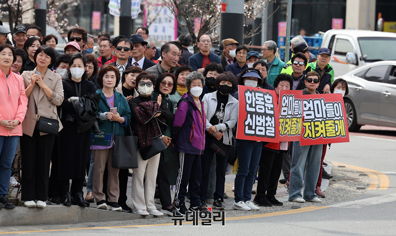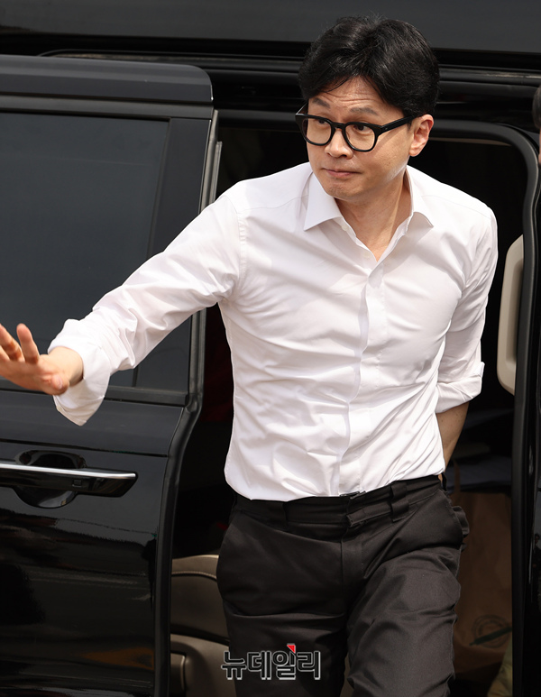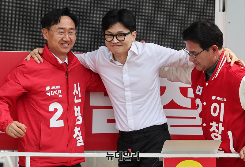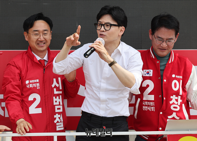 한동훈 국민의힘 총괄선대위원장이 2일 오후 충남 천안시 청당신도시에서 열린 '국민의힘으로 천안살리기2' 지원유세장에 도착해 차량에서 내리고 있다. 한 위원장은 이날 충청권을 돌며 민심을 잡을 예정이다. (충남 천안=정상윤 기자)