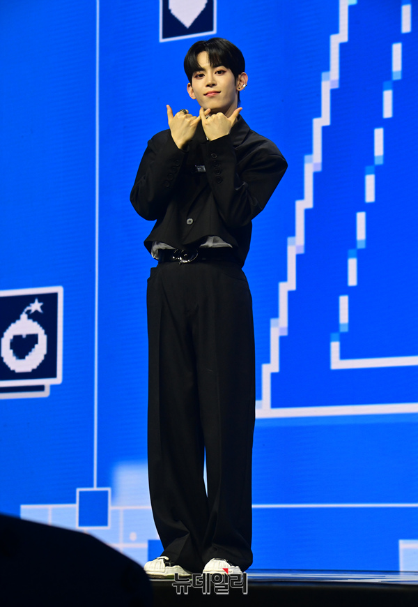 NOWADAYS(현빈, 윤, 연우, 진혁, 시윤)의 첫 번째 데뷔 싱글 'NOWADAYS(나우어데이즈)' 쇼케이스가 2일 오후 서울 용산 블루스퀘어 마스터카드홀 에서 열린 가운데 멤버 현빈이 포토타임을 갖고 있다타이틀곡 'OoWee'(우위)는 소울풀한 멜로디와 힙합 요소가 조화를 이룬 노래로, NOWADAYS(나우어데이즈)를 가장 사랑스럽고 유쾌하게 풀어냈다. 다섯 멤버는 Anti Love Squad(안티 러브 스쿼드)로 변신해 그들만의 트렌디한 캐치프레이즈인 'OoWee'로 리스너들에게 강렬한 중독성을 선사한다.이번 앨범은 다이내믹한 베이스 라인 위 하이브리드 EDM 요소가 가미된 'NOW'(나우)와 어디론가 떠나고 싶은 이들의 마음을 사로잡을 'TICKET'(티켓)까지 수록돼 NOWADAYS(나우어데이즈)만의 다채로운 음악 스펙트럼을 만나볼 수 있다. 오는 4일 Mnet ‘엠카운트다운’에서 첫 데뷔 무대를 선보인다.