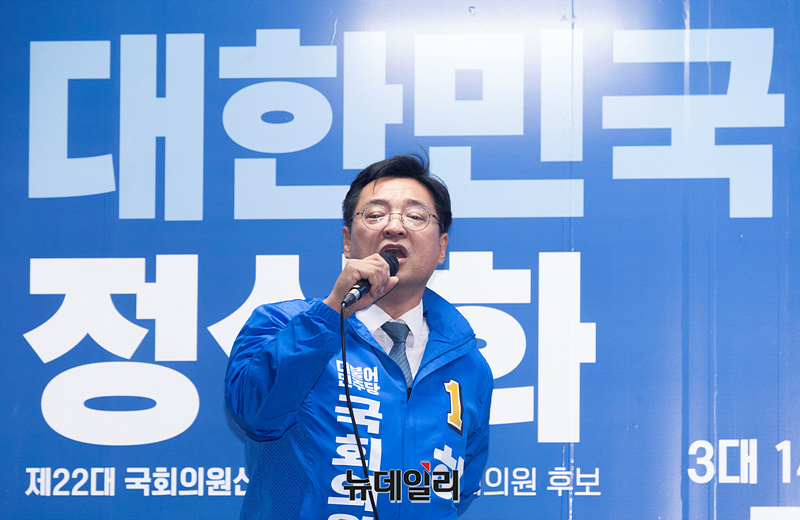허소 더불어민주당 대구중·남구 후보가 2일 오후 대구 동성로 아트스퀘어에서 열린 대구 후보자 합동유세 현장에서 지지를 호소하고 있다. (대구=서성진 기자)