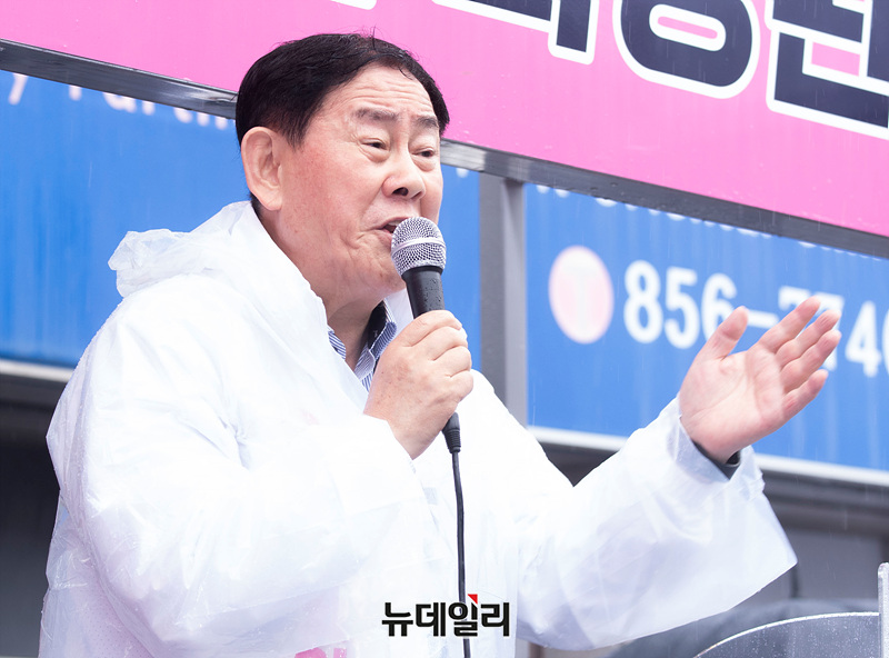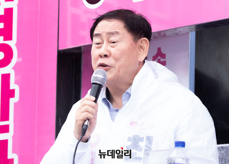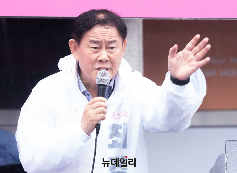 무소속으로 출마한 최경환 경북경산 후보가 3일 오전 경북 경산시 자인시장에서 열린 선거유세 현장에서 지지를 호소하고 있다. (경북 경산=서성진 기자)