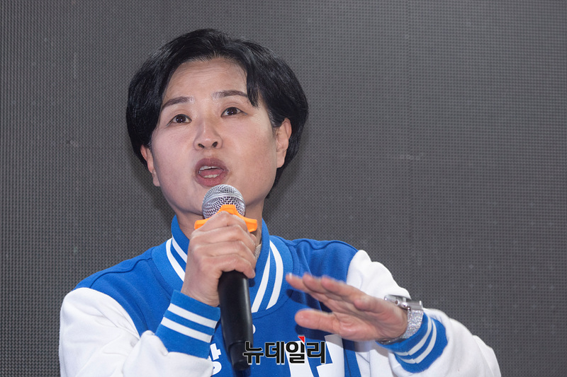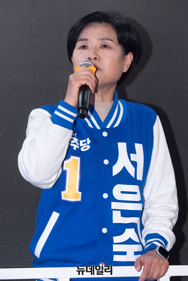 서은숙 더불어민주당 부산진갑 후보가 3일 오후 부산 서면 젊음의거리 인근에서 열린 더불어민주당 집중유세에서 지지를 호소하고 있다. (부산=서성진 기자)