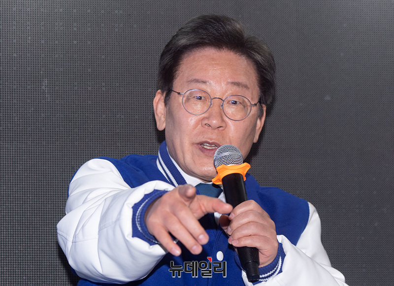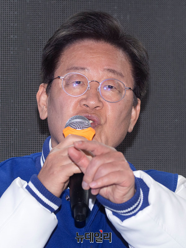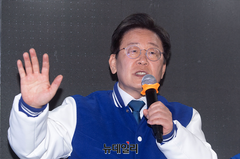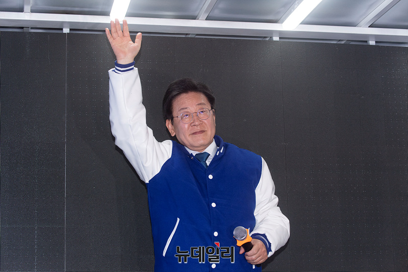 이재명 더불어민주당 상임선대위원장이 3일 오후 부산 서면 젊음의거리 인근에서 열린 더불어민주당 집중유세에서 지지를 호소하고 있다. (부산=서성진 기자)