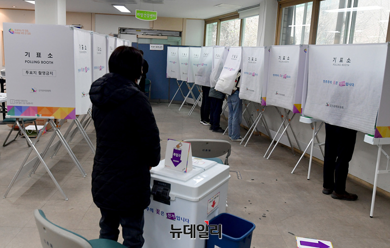 [포토] 22대 총선 사전투표 첫날 '소중한 한표는 어디로?'