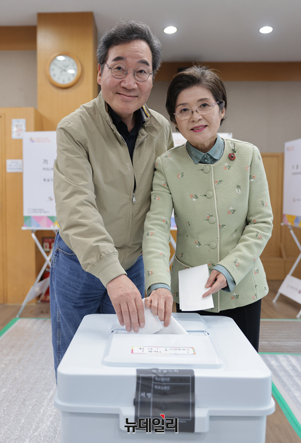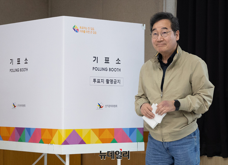 광주 광산구을에 출마 이낙연 새로운미래 공동대표가 제22대 국회의원선거 사전투표일인 5일 오전 광주광역시 첨단1동행정복지센터에서 사전투표를 하고 있다.