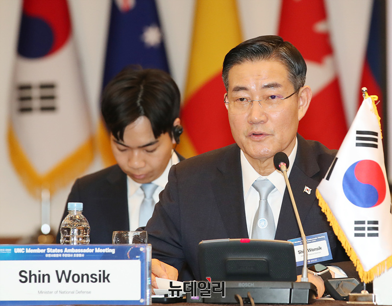 신원식 국방장관이 5일 오전 서울 용산구 국방컨벤션 태극홀에서 열린 '유엔사회원국 주한대사 초청행사'에 참석해 발언하고 있다. (사진=공동취재단)