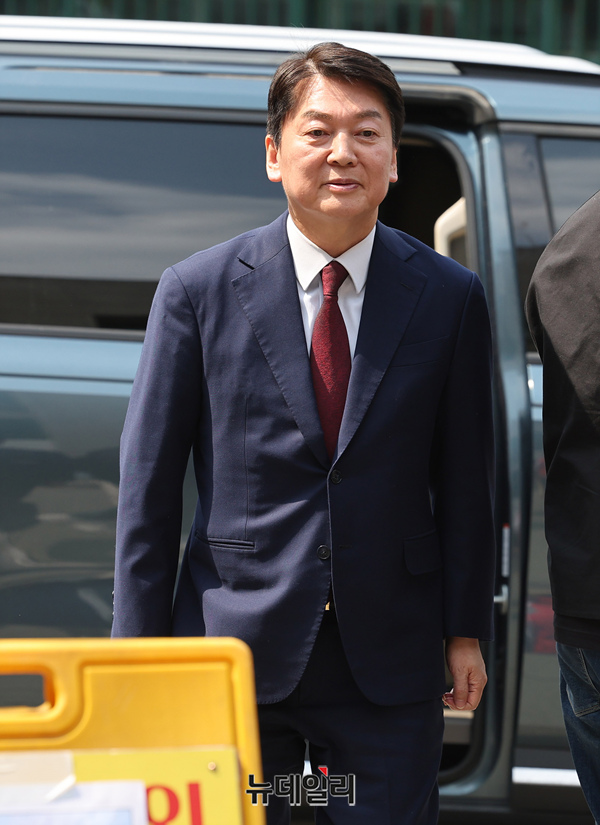 안철수 국민의힘 성남분당갑 후보가 5일 오후 경기 성남시 야탑2동 행정복지센터에서 사전투표를 마치고 취재진의 질문에 답하고 있다.