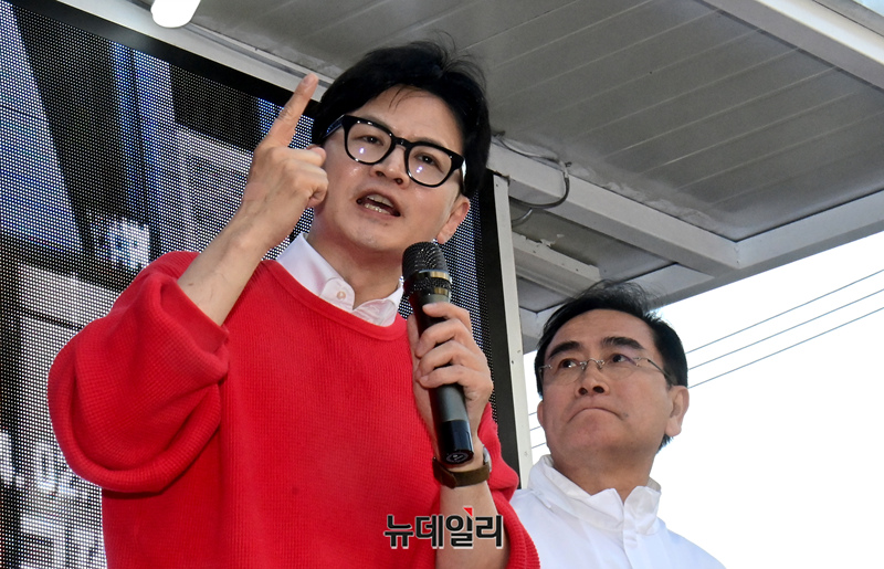 [포토] 호준석·태영호 지원유세 나선 한동훈 위원장