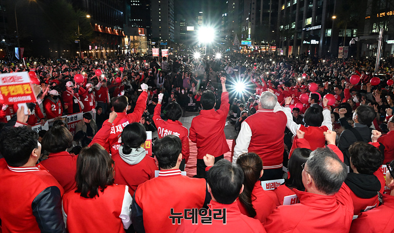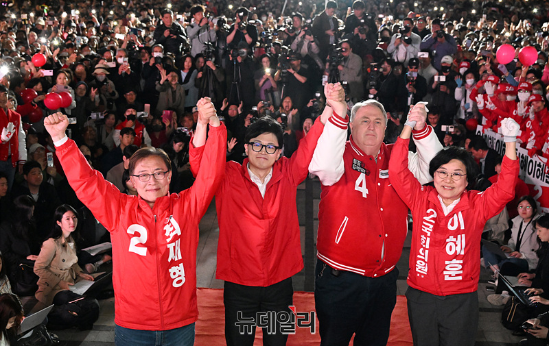 [포토] 국민의힘 파이널 총력유세, 지지호소하는 한동훈·인요한