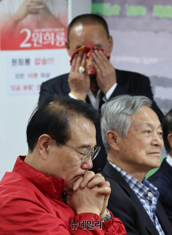 [포토] 출구조사 발표 시청하는 윤형선 계양을 당협위원장