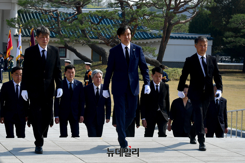 [포토] 현충답 향하는 조국 대표와 당선인들