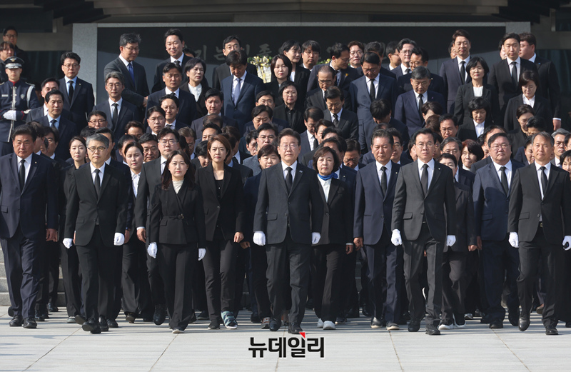[포토] 참배 마친 이재명 민주당 대표와 제22대 총선 당선인들