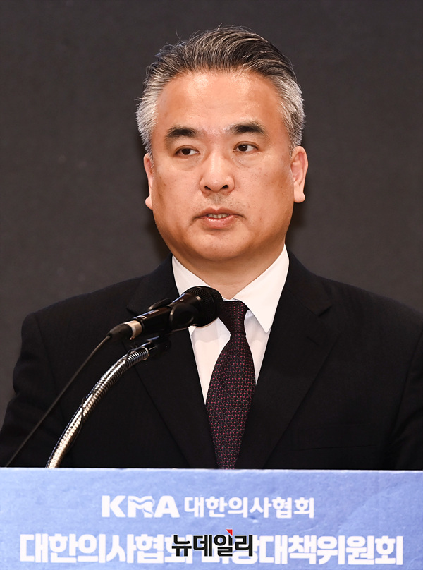 [포토] '의대 정원 확대 원점재검토' 촉구하는 김성근 의협 언론홍보위원장