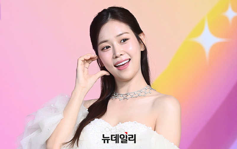 가수 강예슬이 12일 오후 서울 마포구 SBS 프리즘타워에서 열린 '트롯뮤직어워즈 2024' 레드카펫에서 포즈를 취하고 있다.